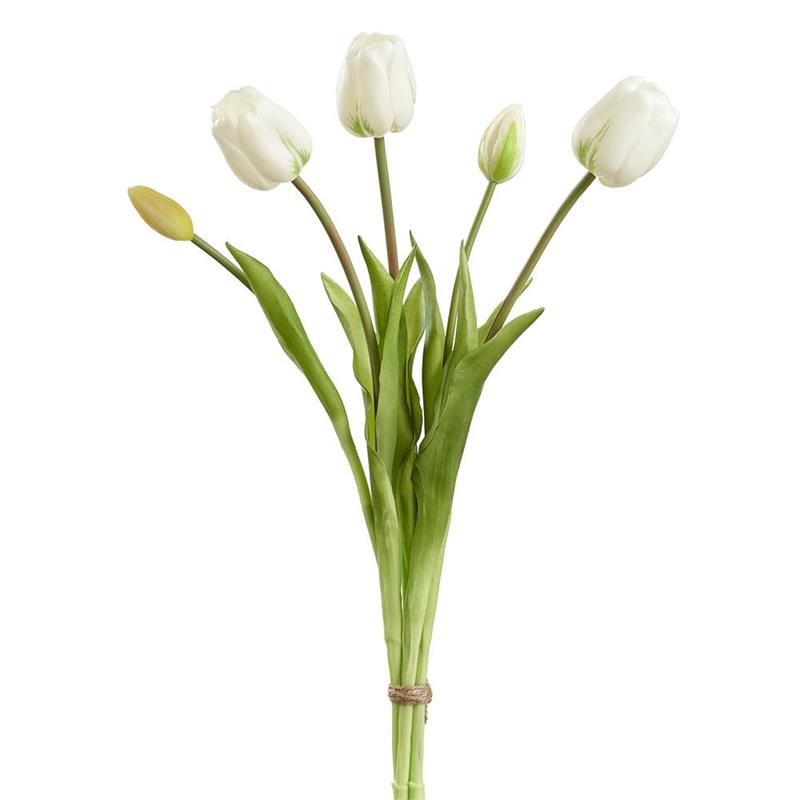 18" Real Touch Tulip Bud Bouquet x5, Cream