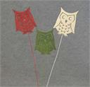 12" Wood Owl Pick, Assorted Red/Green/White, Dozen