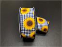 1.5" x 50 yd. ryl/wh gingham/sunflowers (841-09-314)