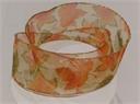 2.5" sheer ribbon w/fall leaves, 50yds