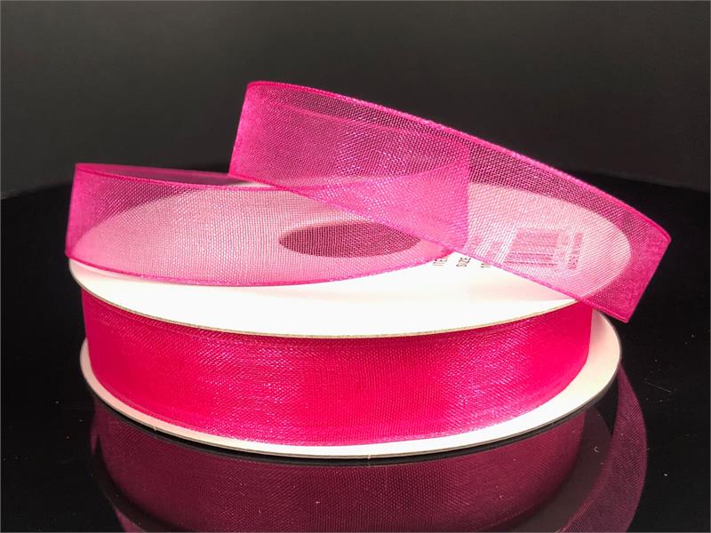 5/8" monofilament edge organza ribbon x 100 yds, fushia