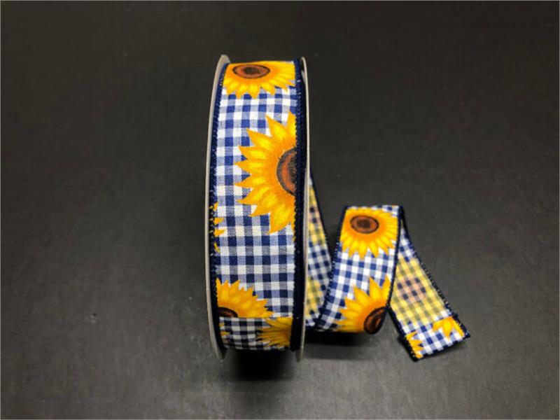 1.5" x 50 yd. ryl/wh gingham/sunflowers (841-09-314)