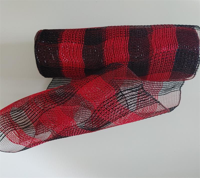 10" fabric mesh, black/red buffalo plaid, 10 yds