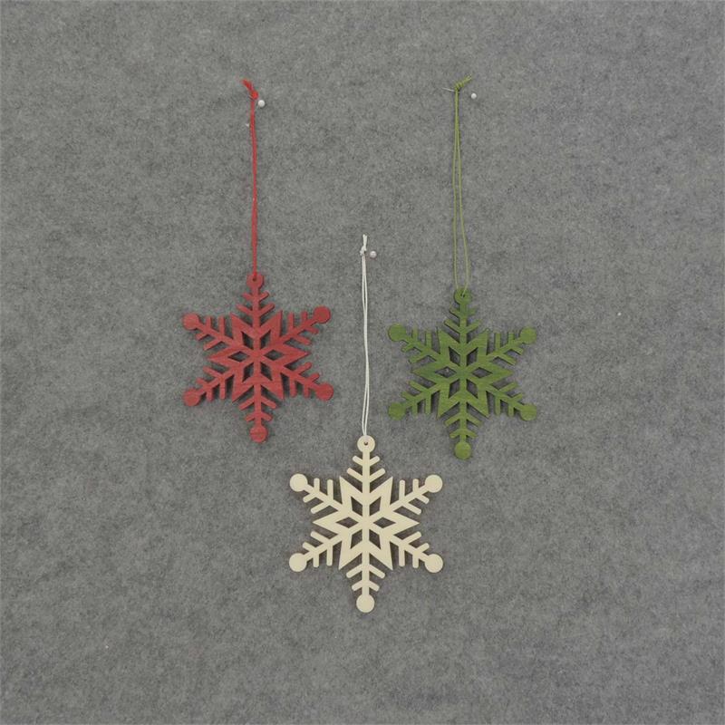4" Wood Snowflake Ornament, Assorted Red/Green/White, Dozen