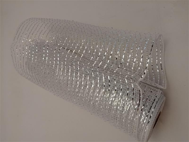 10" fabric mesh, white w/silver stripe, 10 yd. roll
