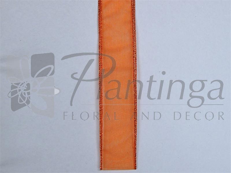 1.5" Wired Sheer Ribbon, orange, 50yds