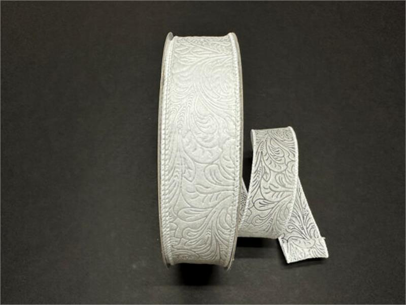 1.5" x 50 yds "breeze" flower embossed ribbon, white (841-09-462)