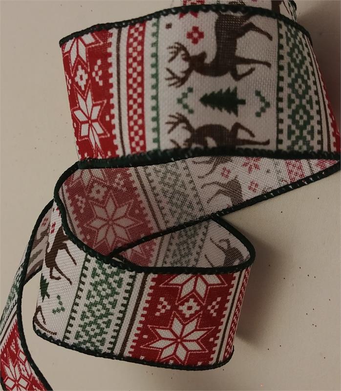 scandanavian christmas linen, 1.5" x 50 yds, wired