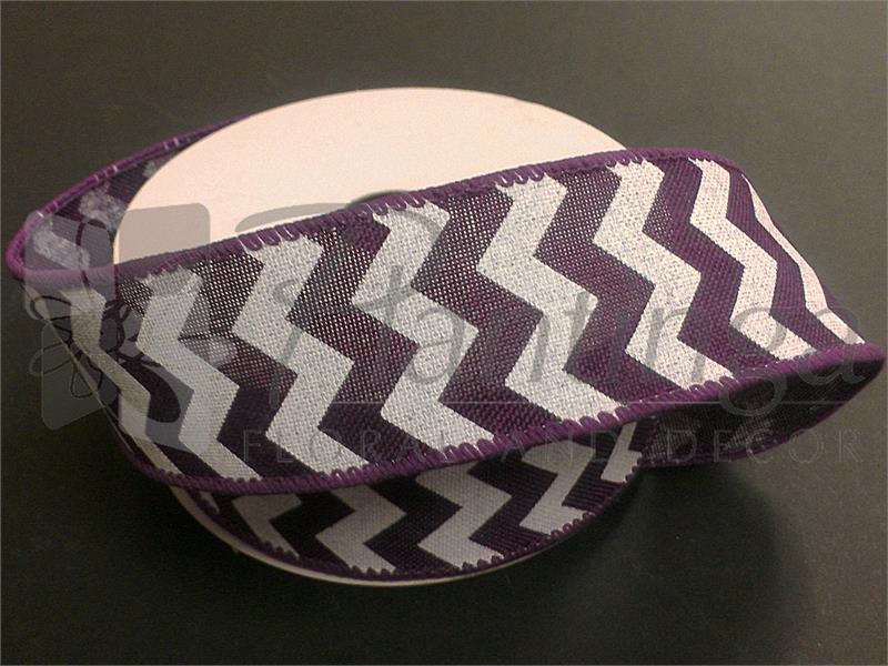 1.5" Chevron Ribbon, white/eggplant canvas, 25yds