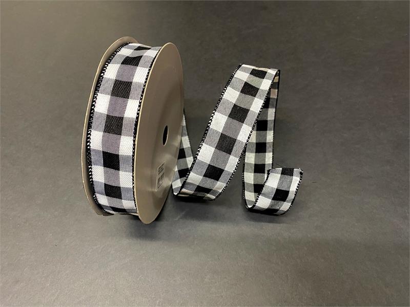 linen, blk/wh buffalo plaid, 1.5" x 50 yds, wired