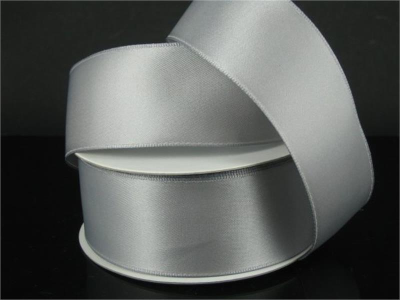 1.5" wired double faced satin ribbon, 25 yds, silver